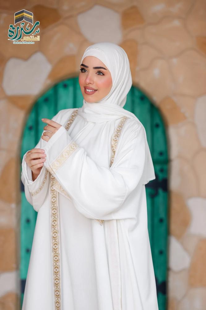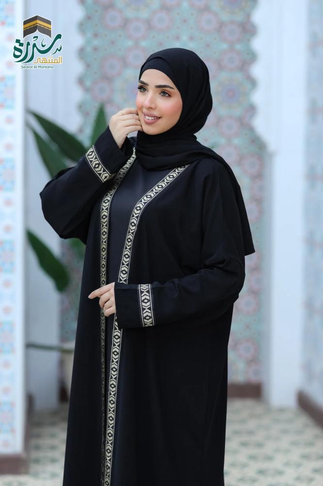 عباية كريب سعودية غير فاخرة بنقشة الكعبة المميزة مع وشاح وغطاء رأس مجاني.